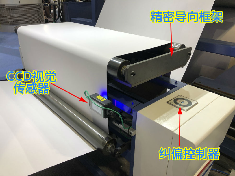 2. 高精度糾偏系統(tǒng):配備CCD視覺傳感器和糾偏控制器,光電跟蹤/跟邊或跟線/行程±75mm,張力由系統(tǒng)自主控制。